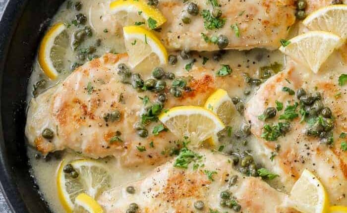 This chicken piccata recipe is delightfully zesty and full of flavor! Pan-fried chicken breasts are simmered in a buttery lemon, wine, and capers sauce. It’s an easy-to-make dish that adds a touch of luxury to everyday cooking.