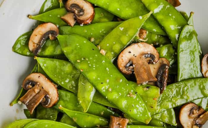 Garlic Snow peas with mushrooms makes a perfect quick side dish for almost any meal.