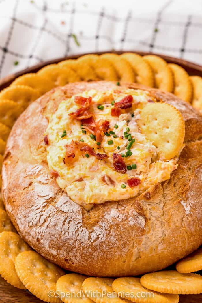 Hot Bacon Cheddar Dip (in a bread bowl)