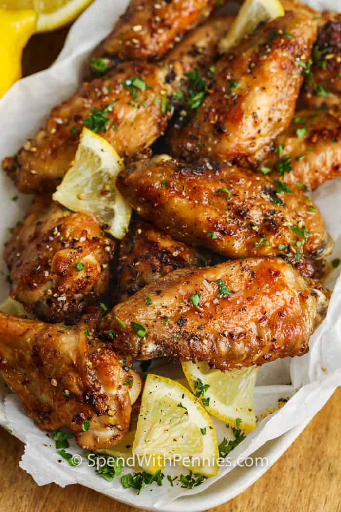 These lemon pepper wings are crispy and zesty with lots of fresh lemon flavor!