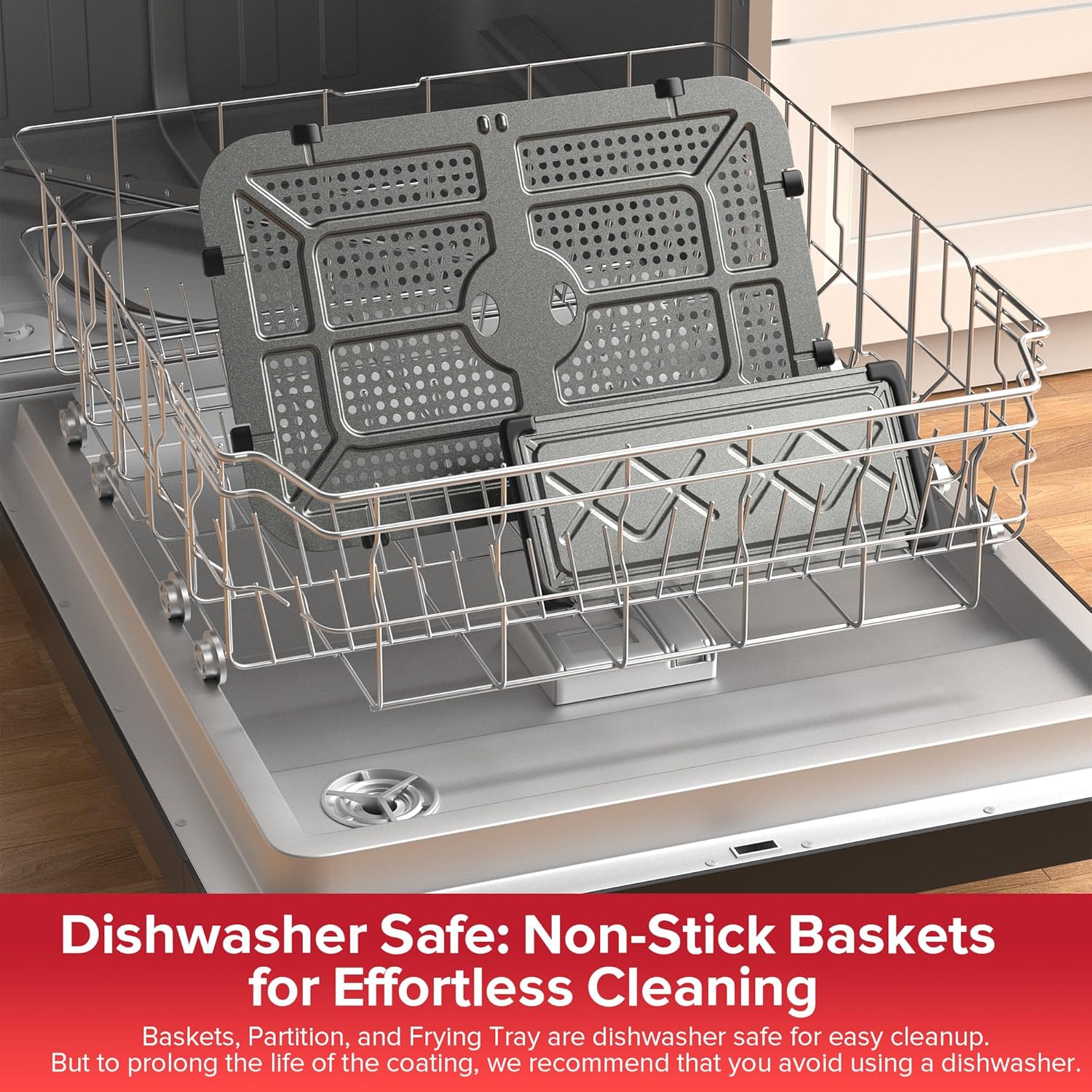 【Dishwasher-Safe & Easy Maintenance】: The non-stick baskets and detachable frying trays are dishwasher-safe for quick cleanup. A simple wipe down of the interior keeps your air fryer looking brand new. Post-meal cleanup is a breeze
