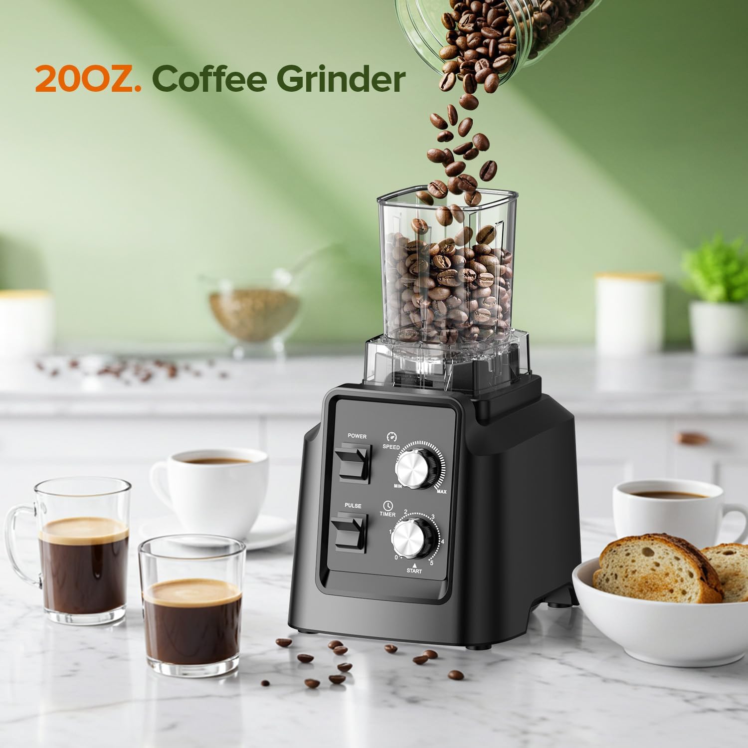 【2-in-1 Versatility with Dedicated Grinder Jar】 More than just a blender. Comes with a separate 20oz BPA-free grinder jar, allowing you to grind coffee beans, spices, or grains without flavor transfer. One base, two jars—your all-in-one kitchen solution for blending and grinding.
