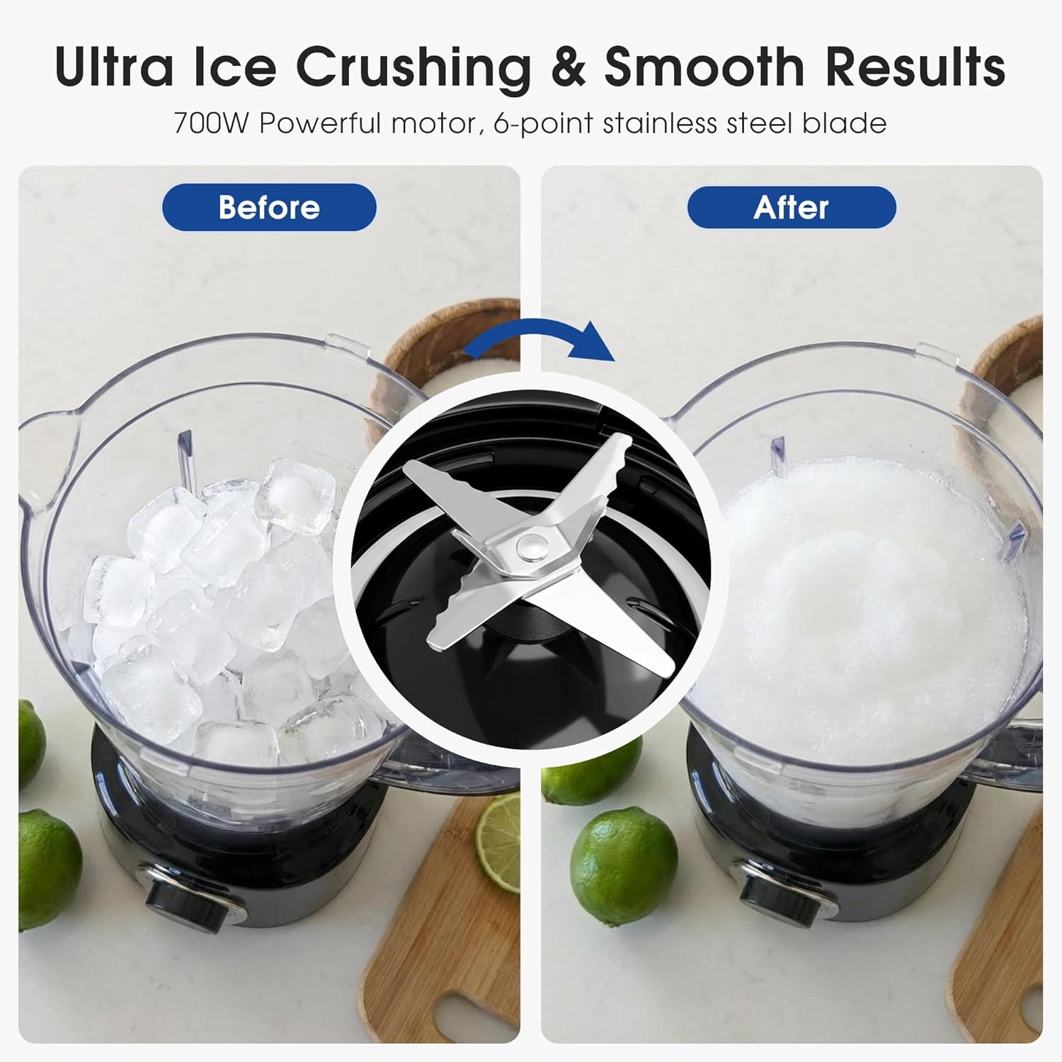 Super Ice-Crushing Perform: Don’t let ice and frozen fruit stand in your way! Built with 700W powerful copper motor and heavy-duty 6-point stainless steel blade, our blenders for kitchen crush ice with ease and break down whole fruits and veggies for consistently smooth, clump-free results