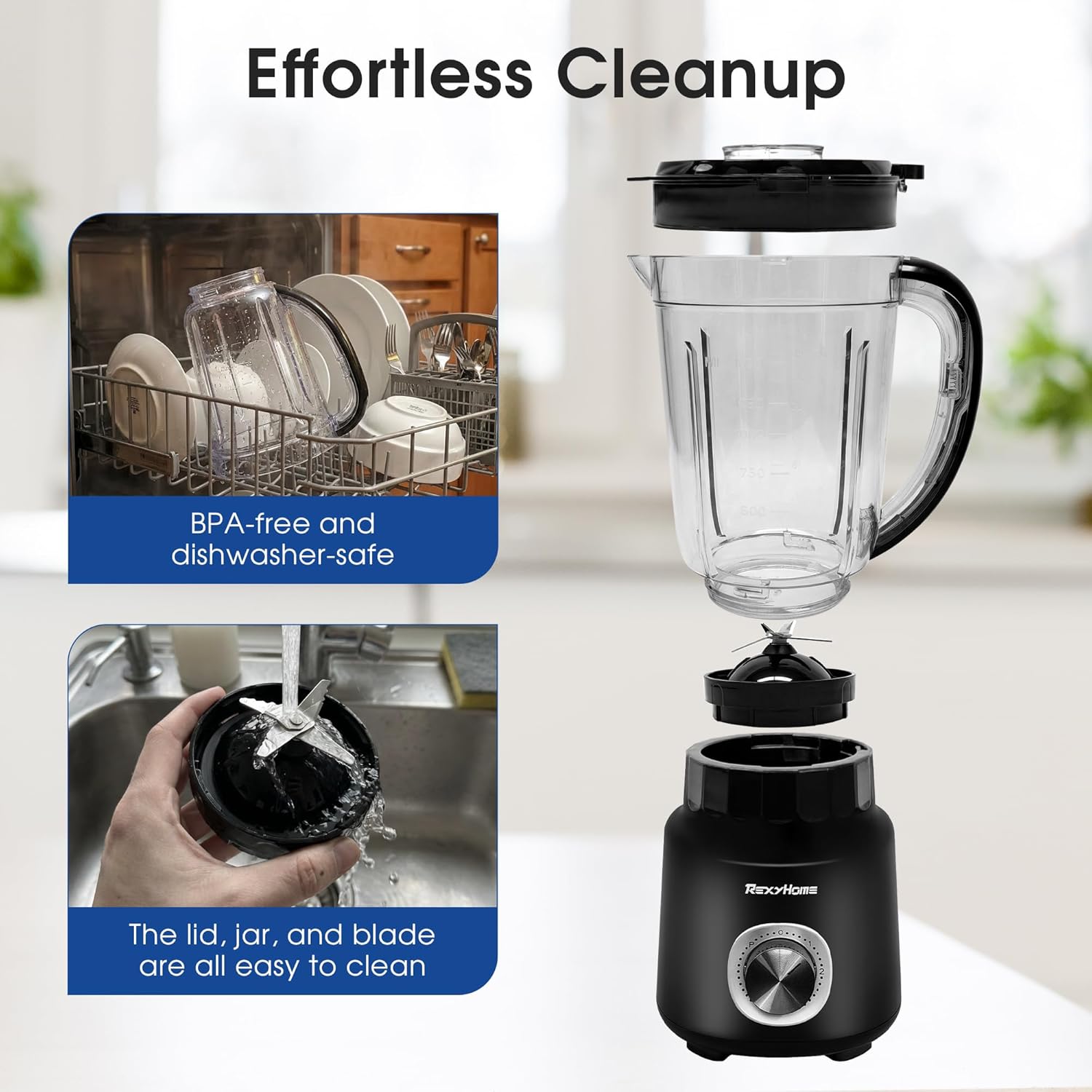 Easy to Clean & Everyday Simple: The jar and lid of this smoothie blender are dishwasher safe, and can be quickly rinsed with water. From hearty breakfast smoothies to creamy soups and homemade sauces, achieve perfect results with effortless cleanup