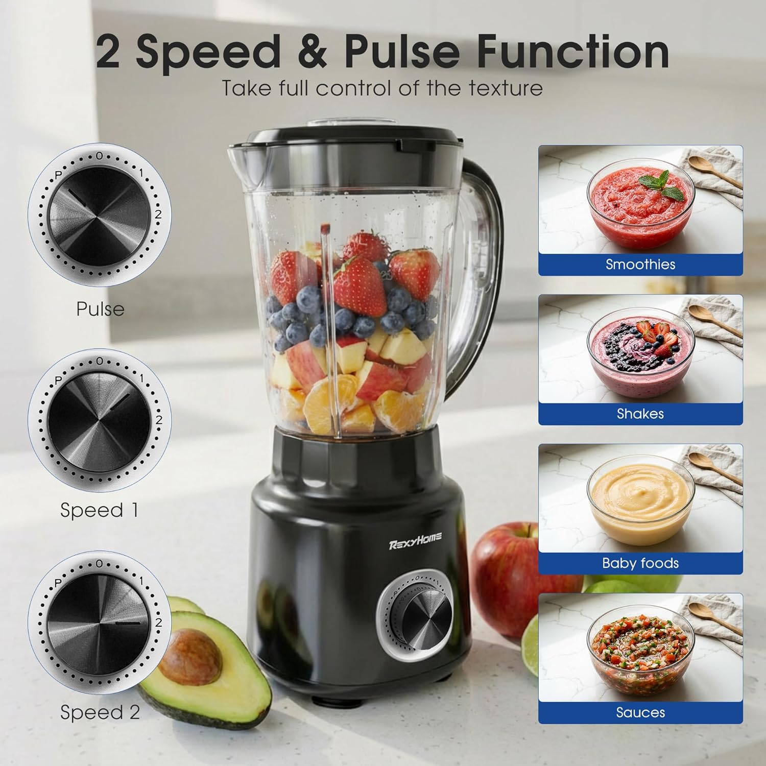 Easy to Use with 3 Speeds: Take full control of your textures with 2 speed settings and pulse function. Operate the kitchen blender speed-1 for gentle blending, speed-2 for tough tasks, and pulse for quick bursts of power to finely chop or create coarse blends
