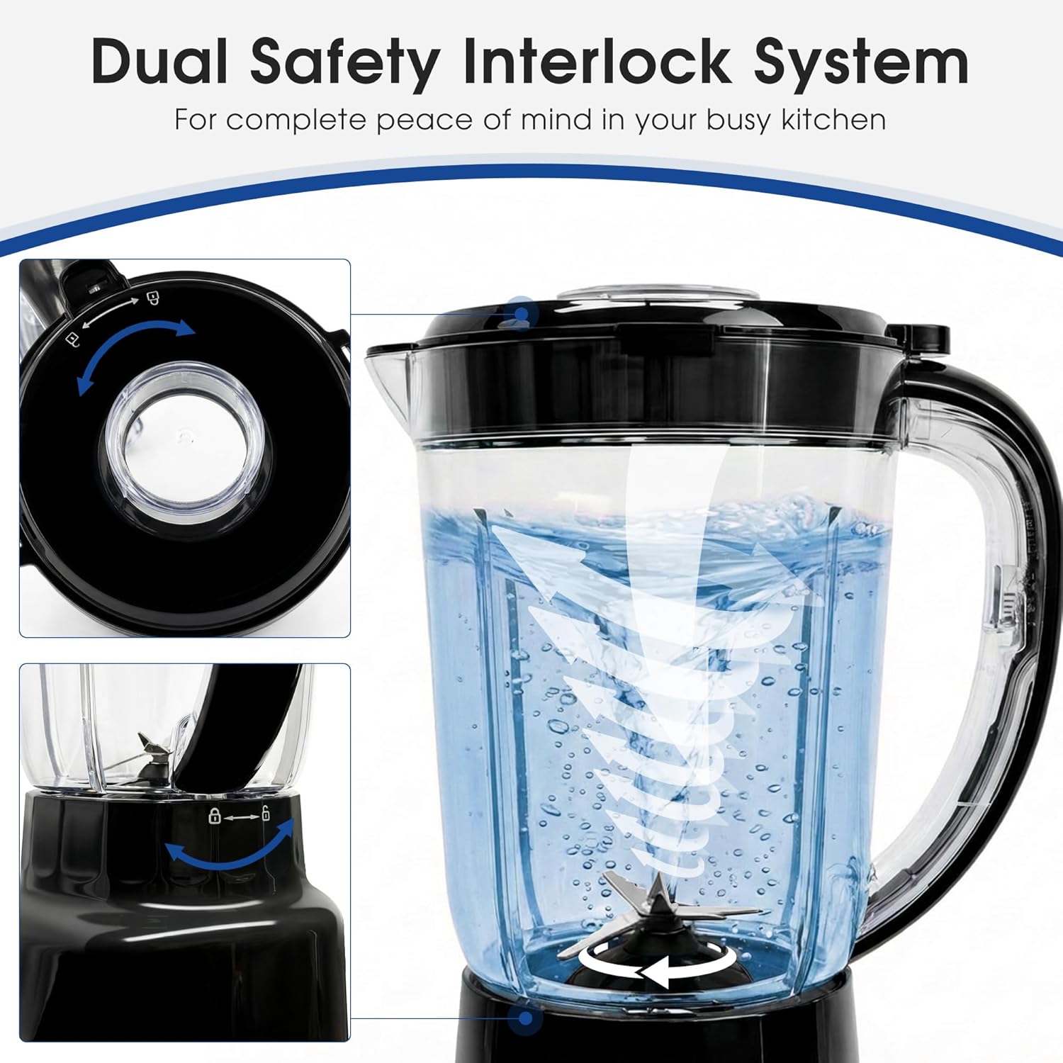 Worry-Free Blending: Engineered with safety in mind, our blender for smoothies features a dual secure safety interlock system. The unit will only operate when the jar and lid are correctly locked, preventing accidental starts and ensuring peace of mind. Perfect for busy kitchens and homes with kids