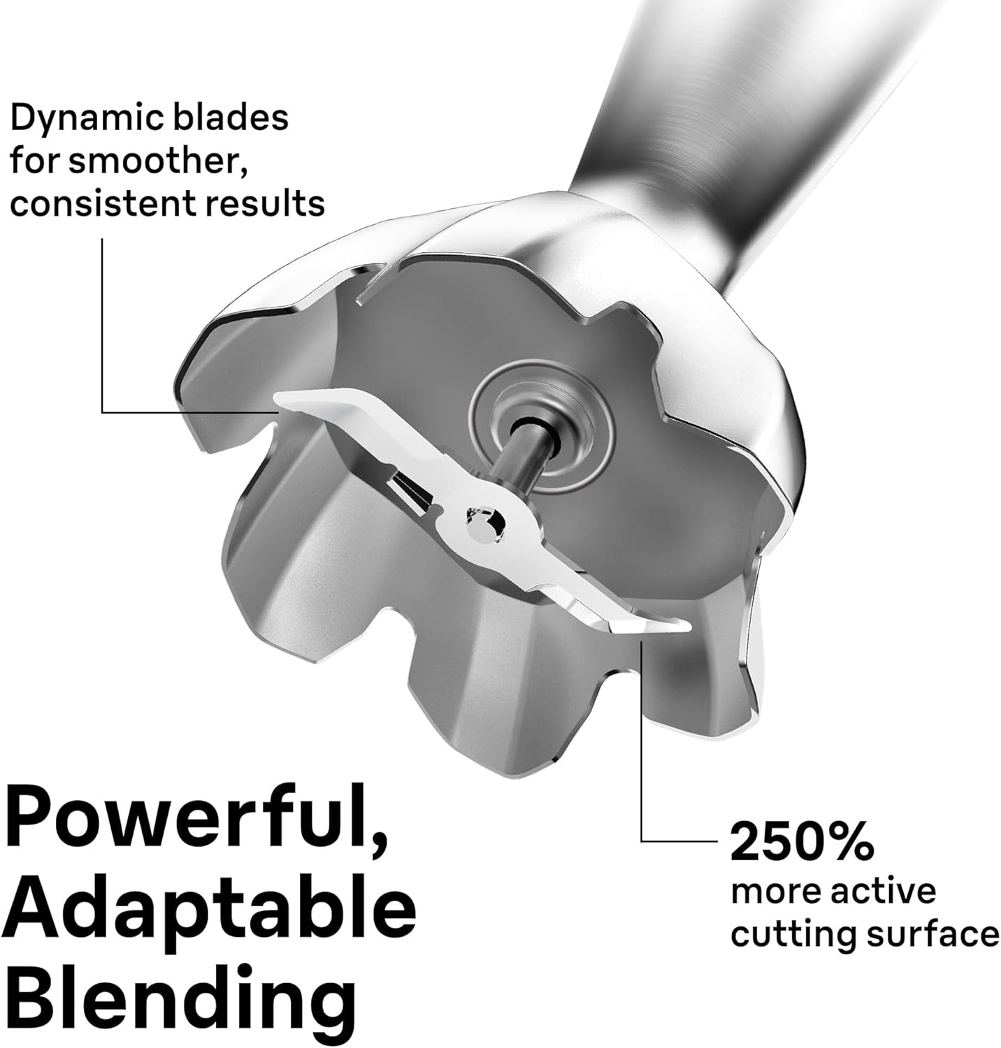 FASTER, FINER RESULTS The world’s first ACTIVEBlade technology incorporates a flexible shaft that moves the blade up and down resulting in 250% more active cutting surface. This motion gives you flavorful, smooth results with no unwanted pieces. The hardest foods stand no chance with the 500-watt motor. Compared to Braun MQ700.