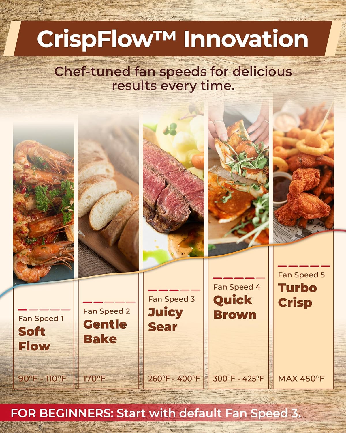 Adjustable Airflow Control:A 5-level adjustable airflow design delivers faster, quieter performance, making it a powerful yet portable air fryer for everyday use.