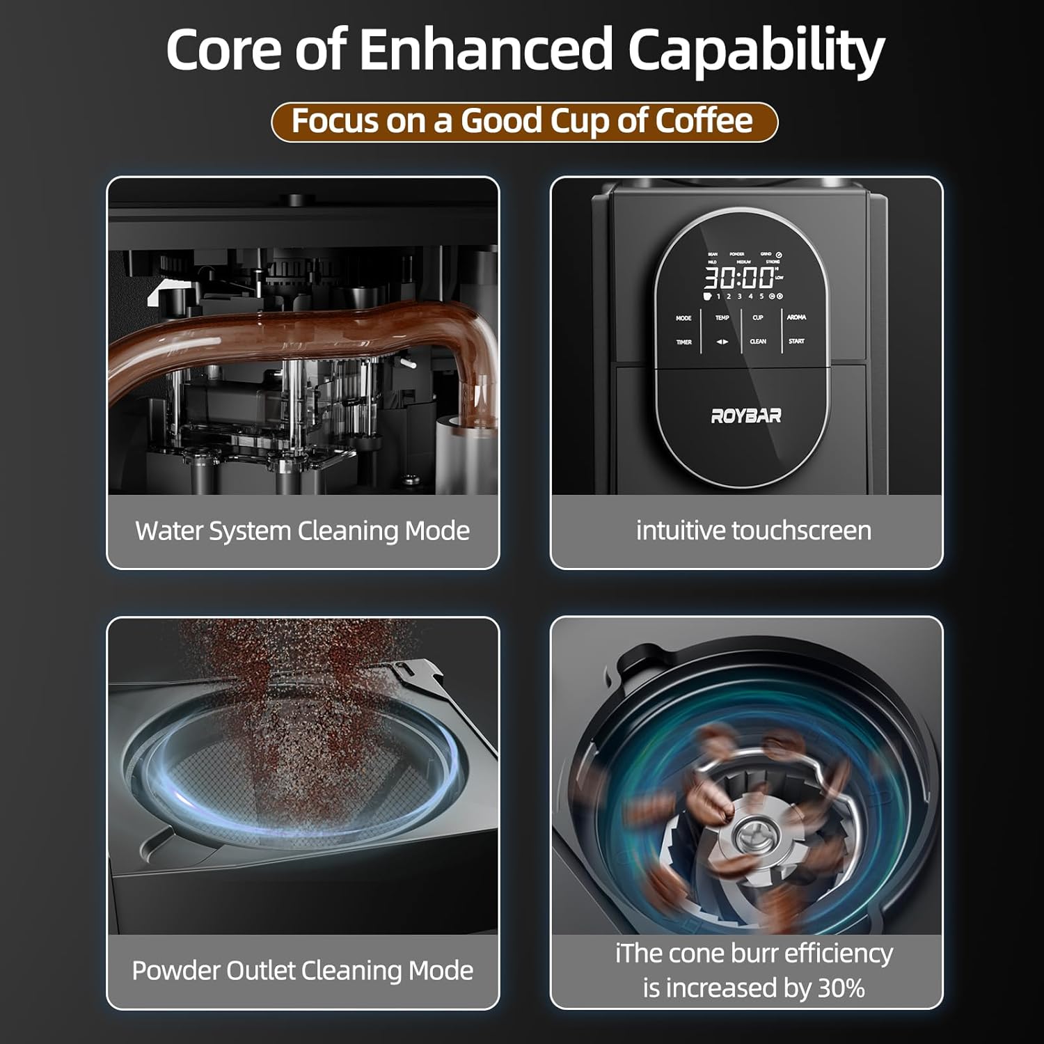 [Integrated Control Panel] This coffee machine with grinder, which combines grinding and brewing, is equipped with a responsive touch panel, allowing you to set brewing mode, coffee strength, temperature, number of cups, and coffee intensity. It also supports pre-scheduling for fully automatic operation. The grind and brew coffee maker offers capacity options from 1 cup (4.4 fl oz) to 5 cups (21.98 fl oz), making it perfect for personal use, small to medium households, small offices, or meetings.
