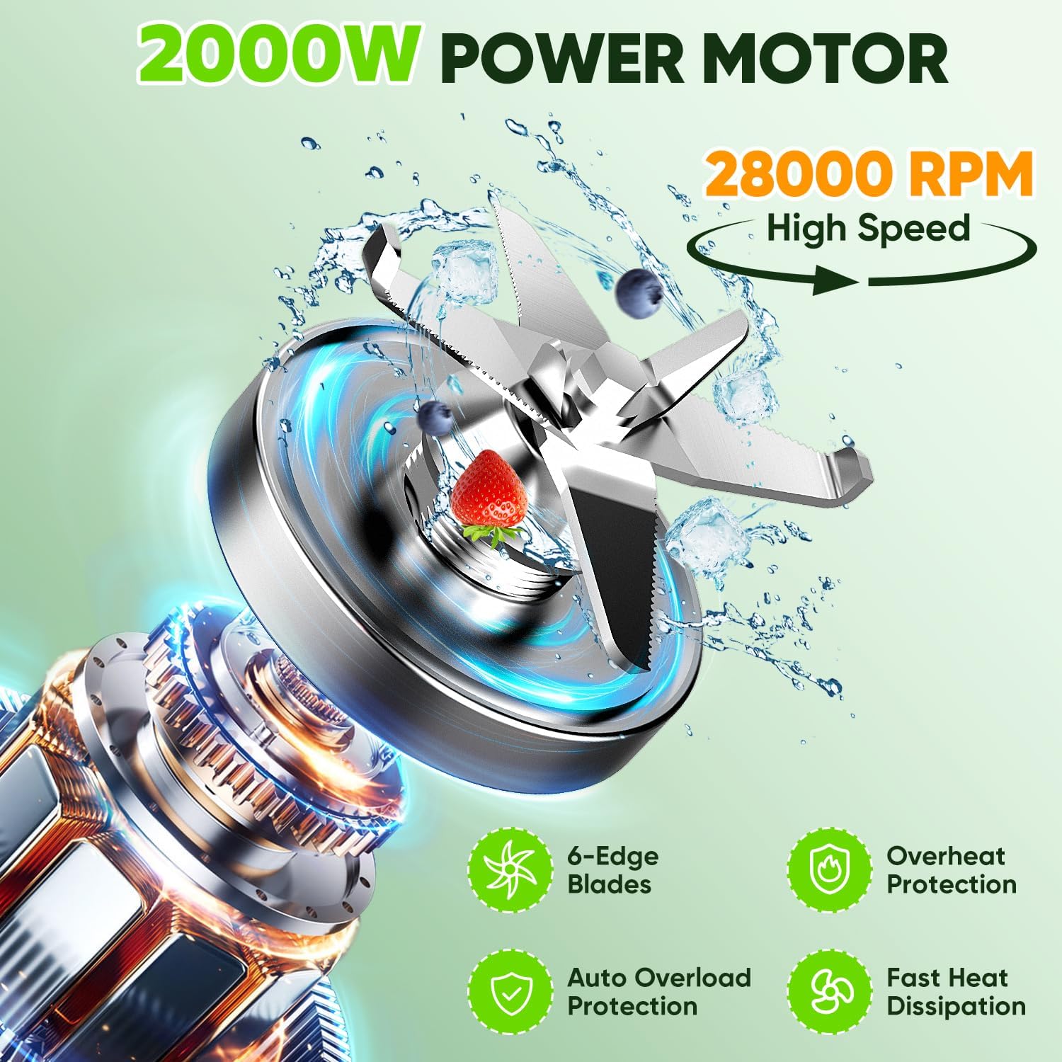 🍍PROFESSIONAL POWER: Our power blender for smoothie equiped with 2000 Peak Watt industrial-grade powerful motor to get the perfect texture, pulverizes crush ice to snow in seconds, can handle a variety of ingredients easily. Unique fan and motor technology, reduce operating noise.