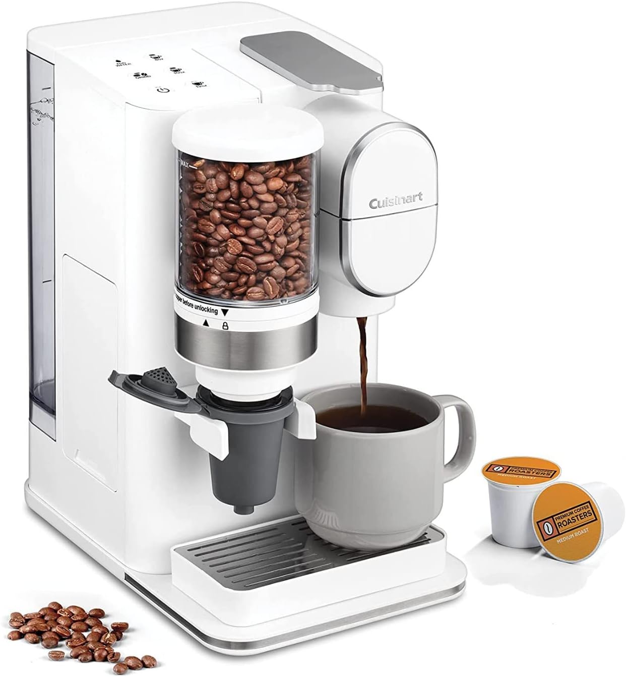 Cuisinart Single-Serve Coffee Maker + Coffee Grinder with 8 oz., 10 oz., and 12 oz. Serving Size, Compatible with Single-Cup Pods, 48-Ounce Removable Reservoir, Stainless Steel, DGB-2W