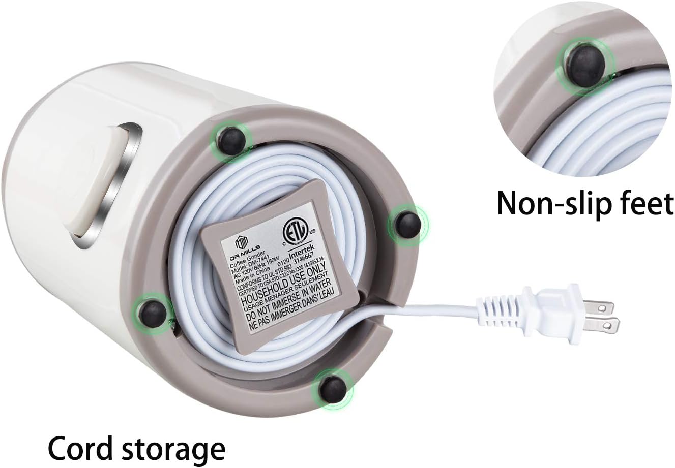 DR MILLS DM-7441W Coffee Grinder Electric, Coffee Bean and Dried Spice Grinder, One Touch Operation, Blade and Cup Made with SUS304 Stainless Steel (White)