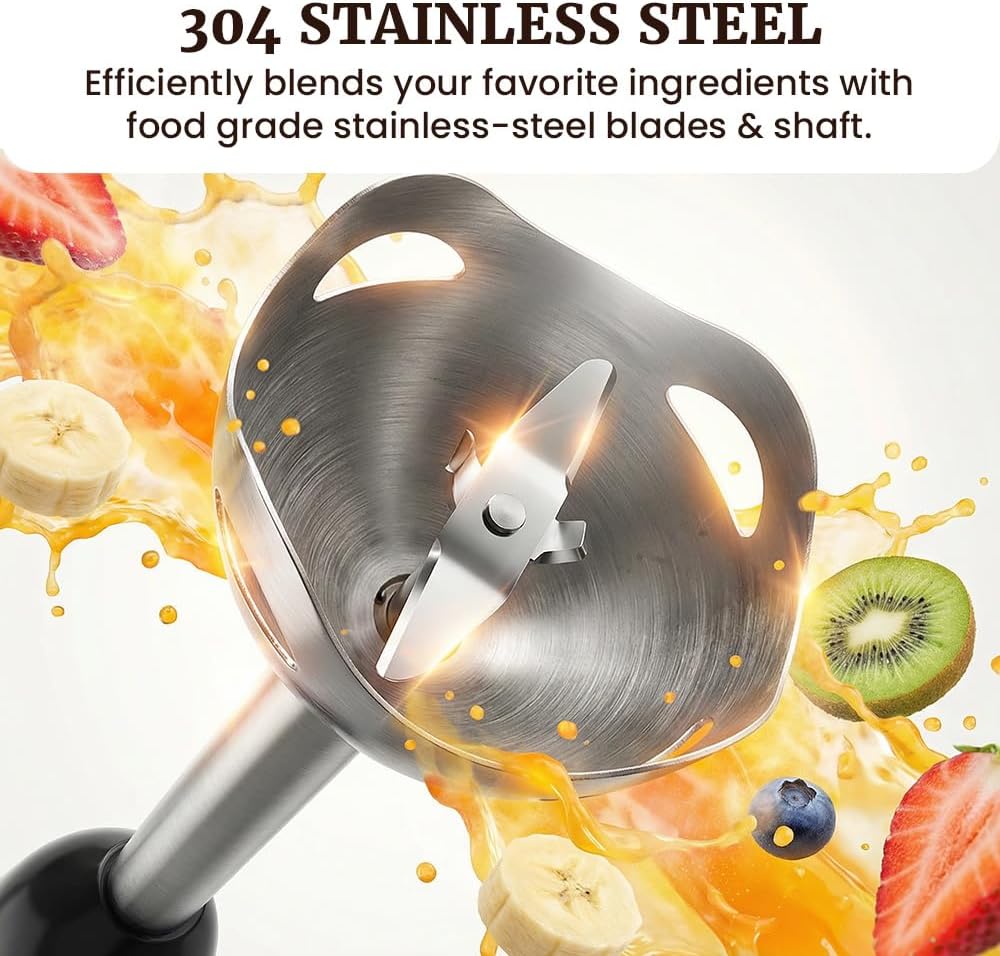 Compact and Heavy Duty design with a slim and sleek stainless steel immersion shaft to fit most mixing bowls, cups and pots.