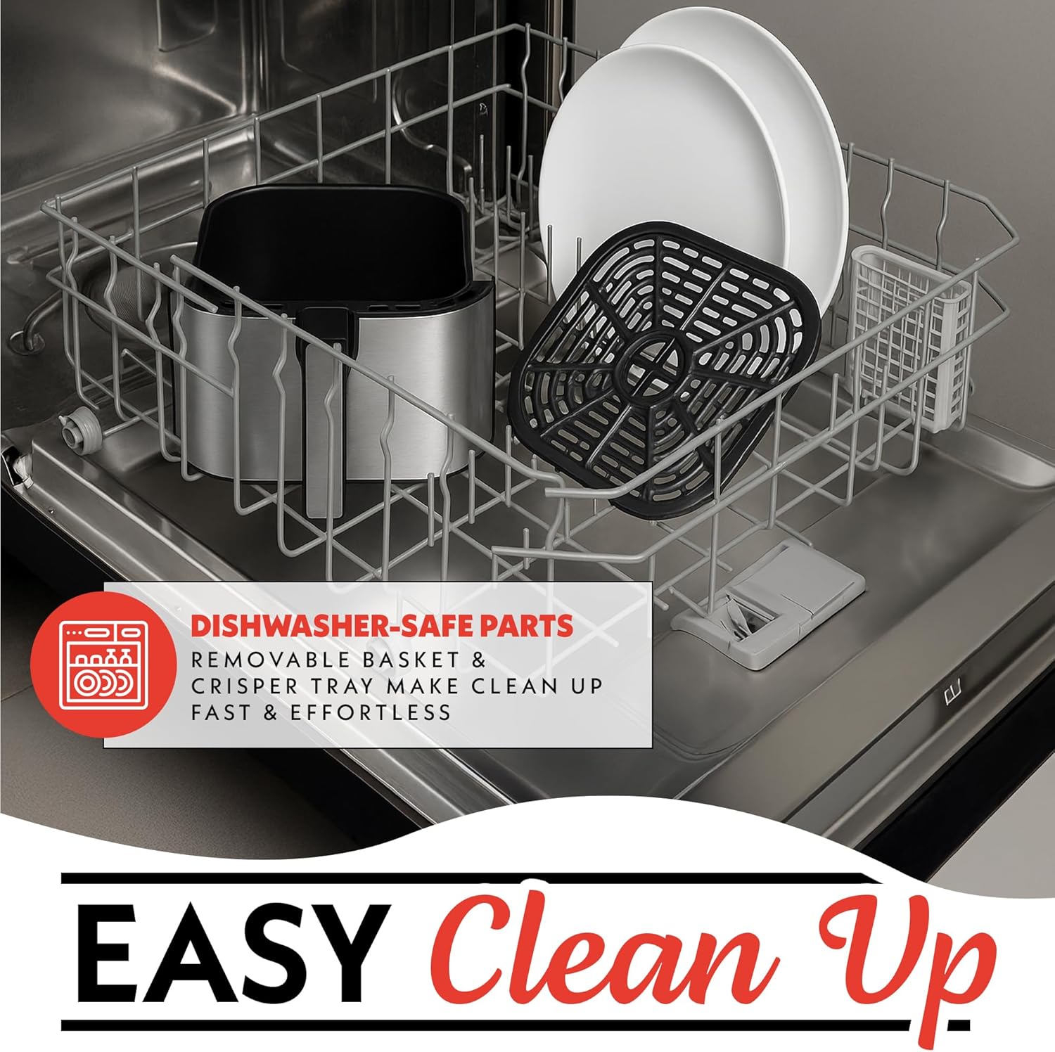 Easy Cleanup – Dishwasher-Safe Basket & Tray : Nonstick coating makes cleanup fast and easy.
