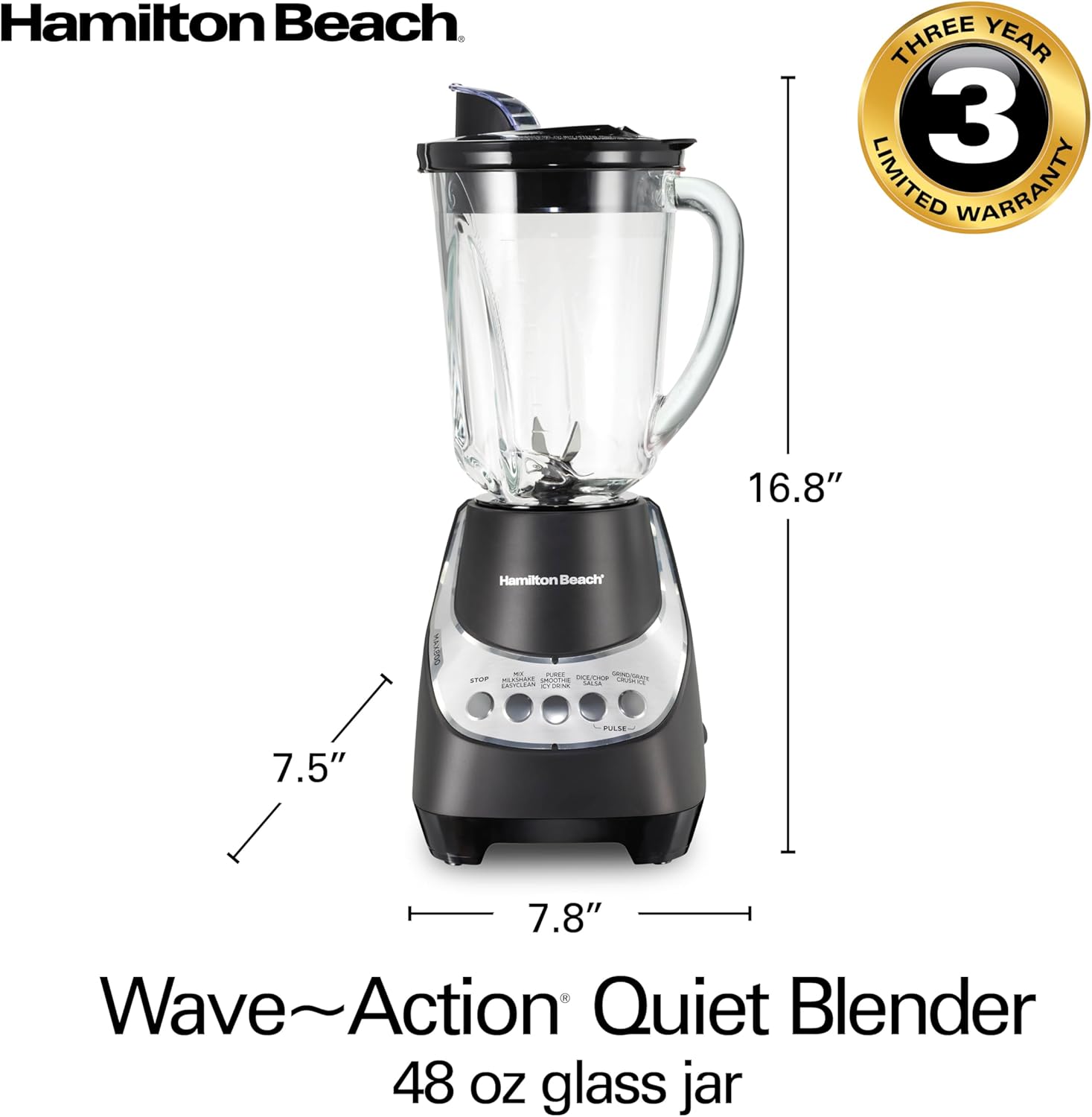 Hamilton Beach Wave~Action Quiet Blender, 48 oz. Glass Jar, 12 Blending Functions, Black, R53530 (Renewed)