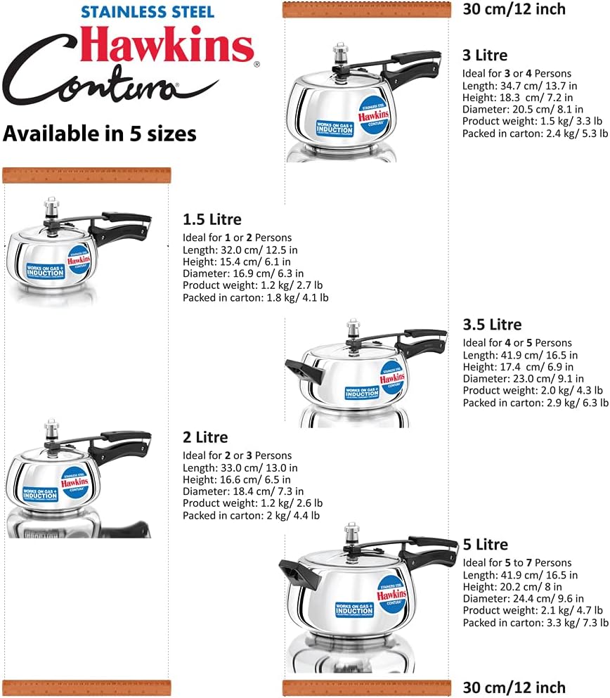 Hawkins 3 Litre Contura Pressure Cooker, Stainless Steel Inner Lid Cooker, Handi Cooker, Induction Cooker, Silver (SSC30)
