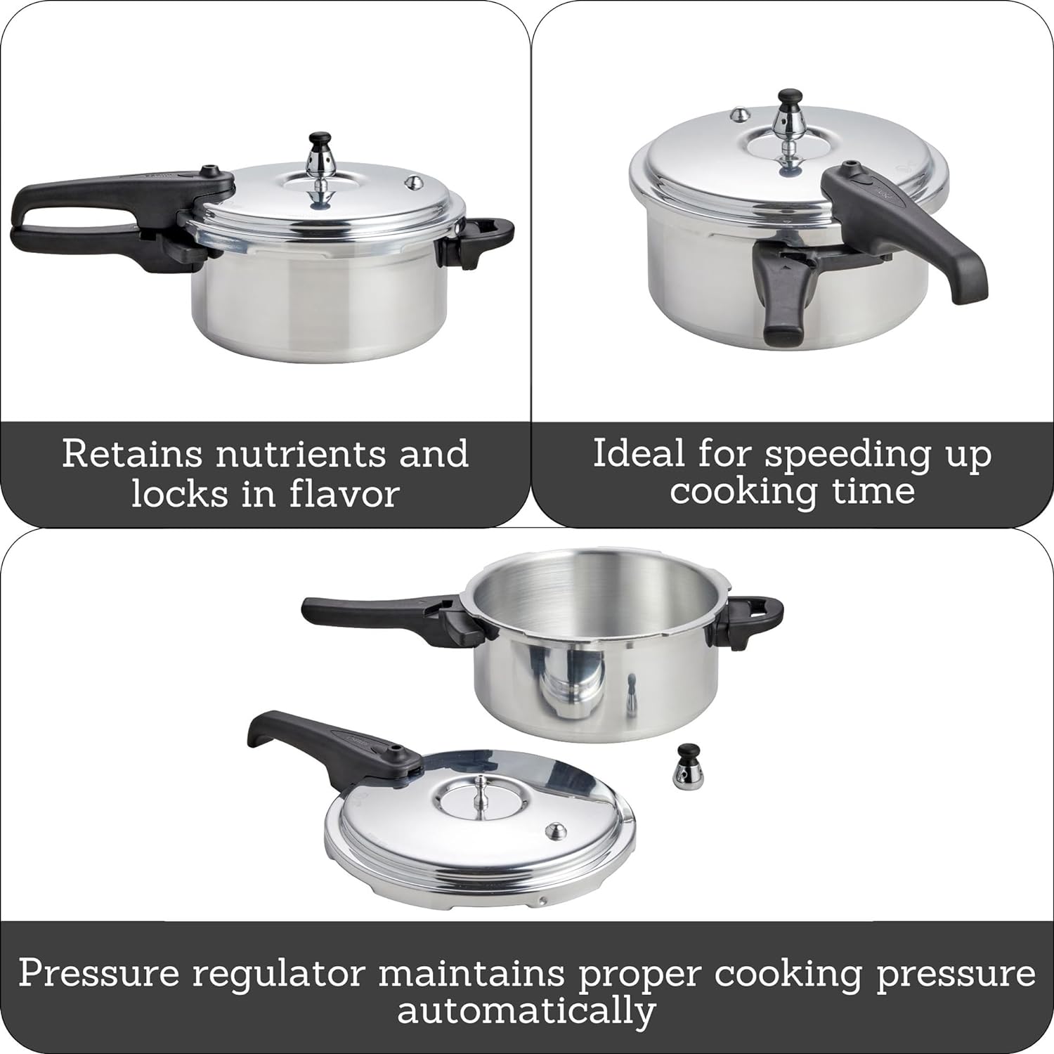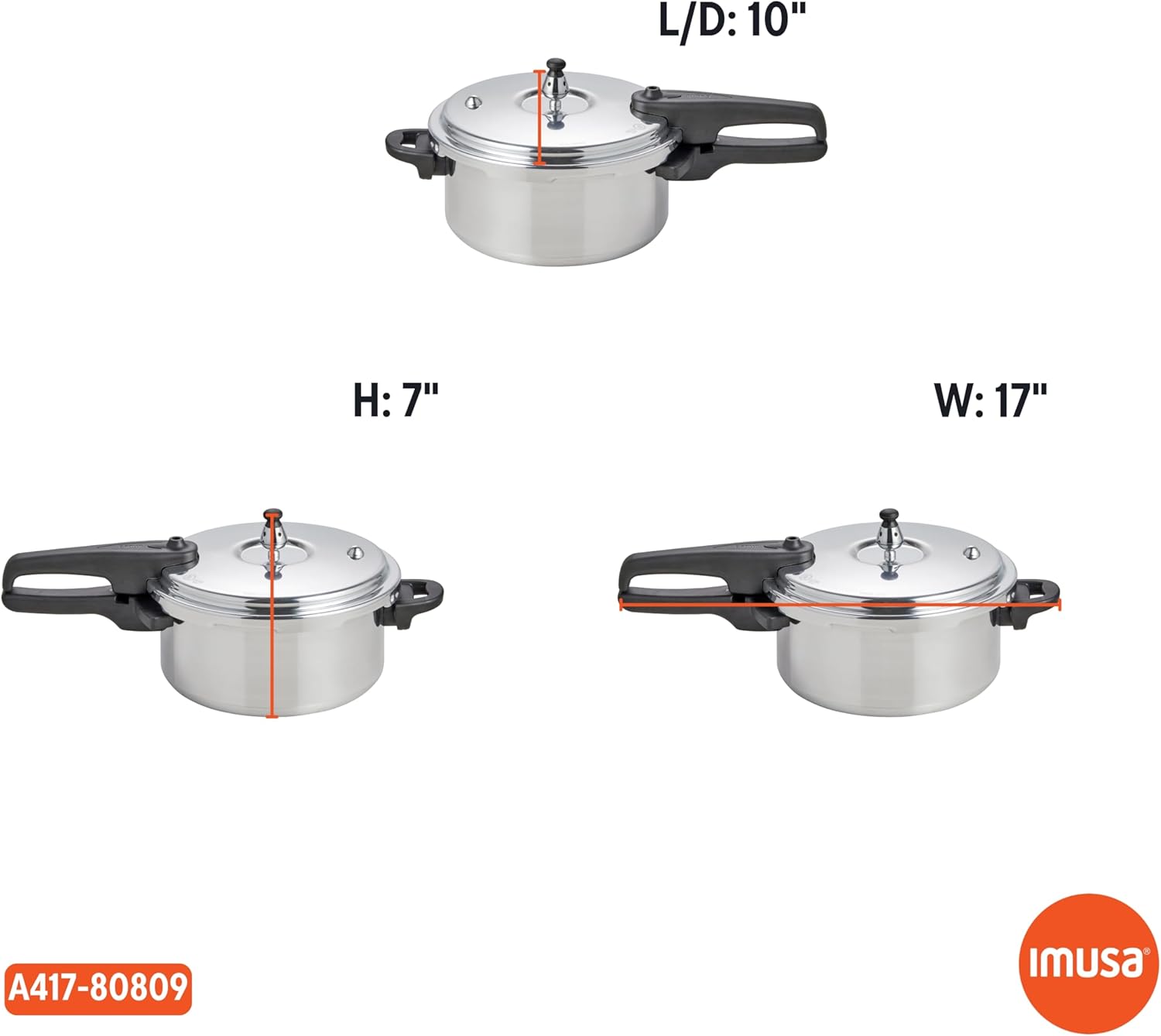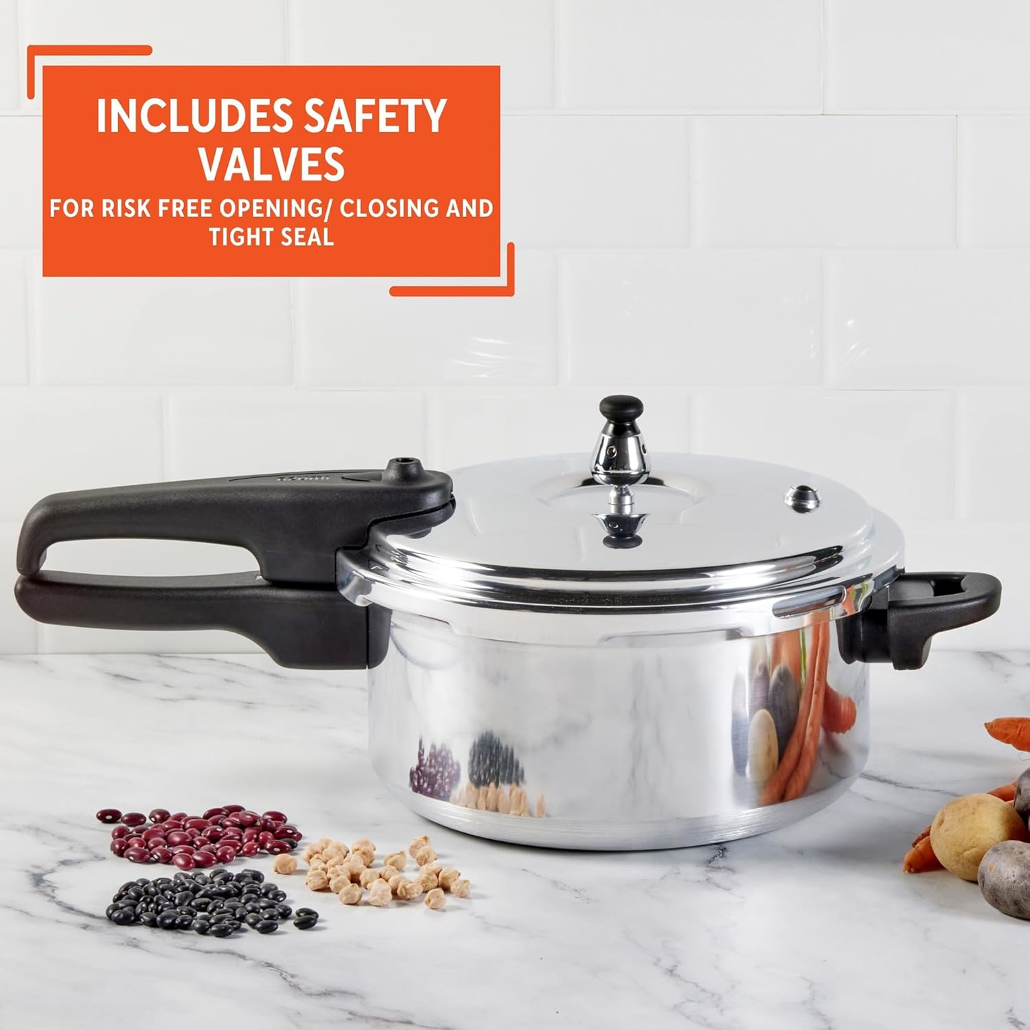 IMUSA 4.2 Quart Stovetop Aluminum Presure Cooker with safety valves for risk-free opening