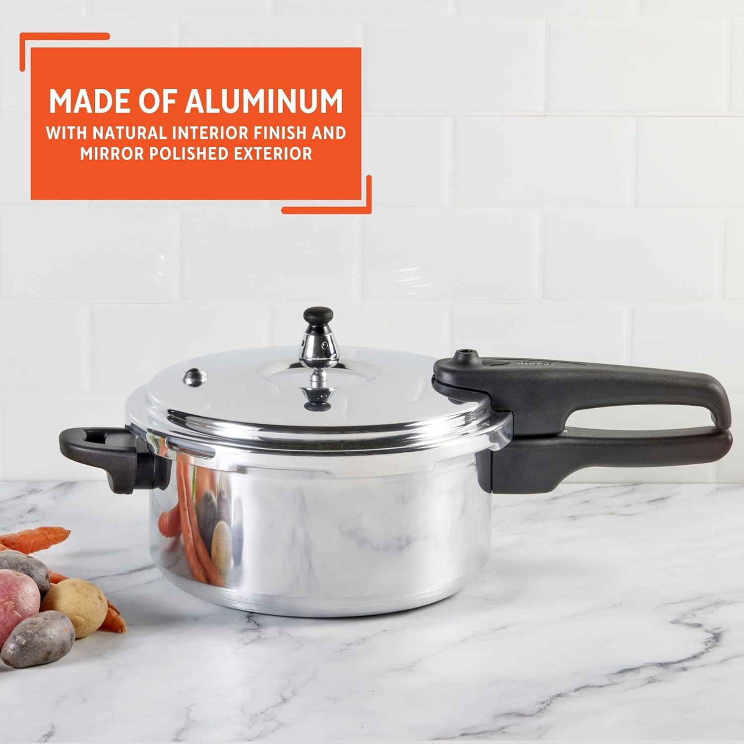 STYLISH AND RELIABLE: Constructed from aluminum, this stovetop pressure cooker features a natural interior finish and a mirror-polished exterior, combining durability with a sleek look for stylish and even cooking