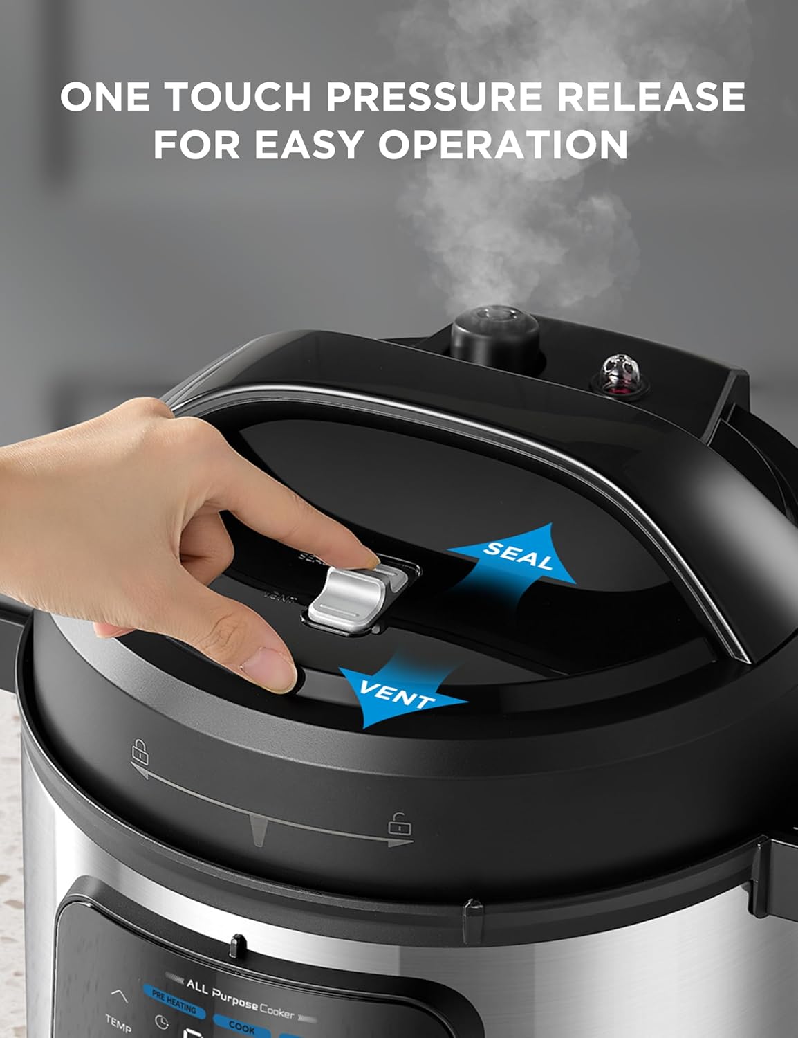 10-in-1 Kitchen Powerhouse: Pressure cook, slow cook, steam, sauté, sous vide, bake, make rice, yogurt, and much more—all in one versatile pot for endless meal possibilities.