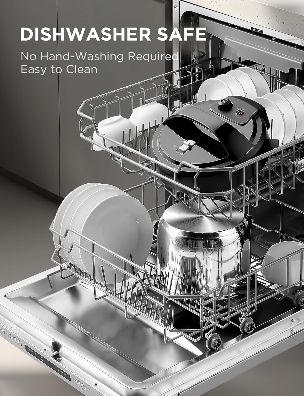 Effortless Cleanup: Both the inner pot and lid are dishwasher safe. No more scrubbing—just enjoy your meal and let the dishwasher do the work.