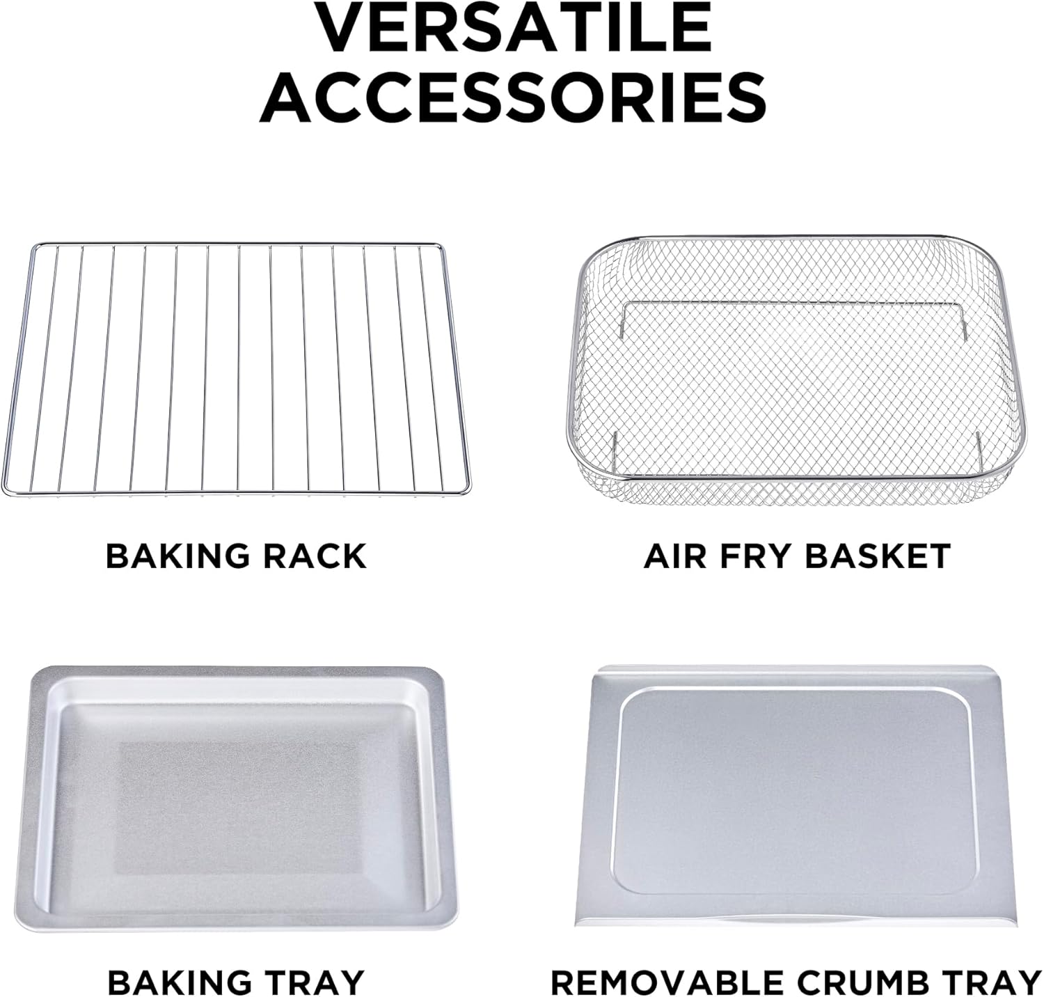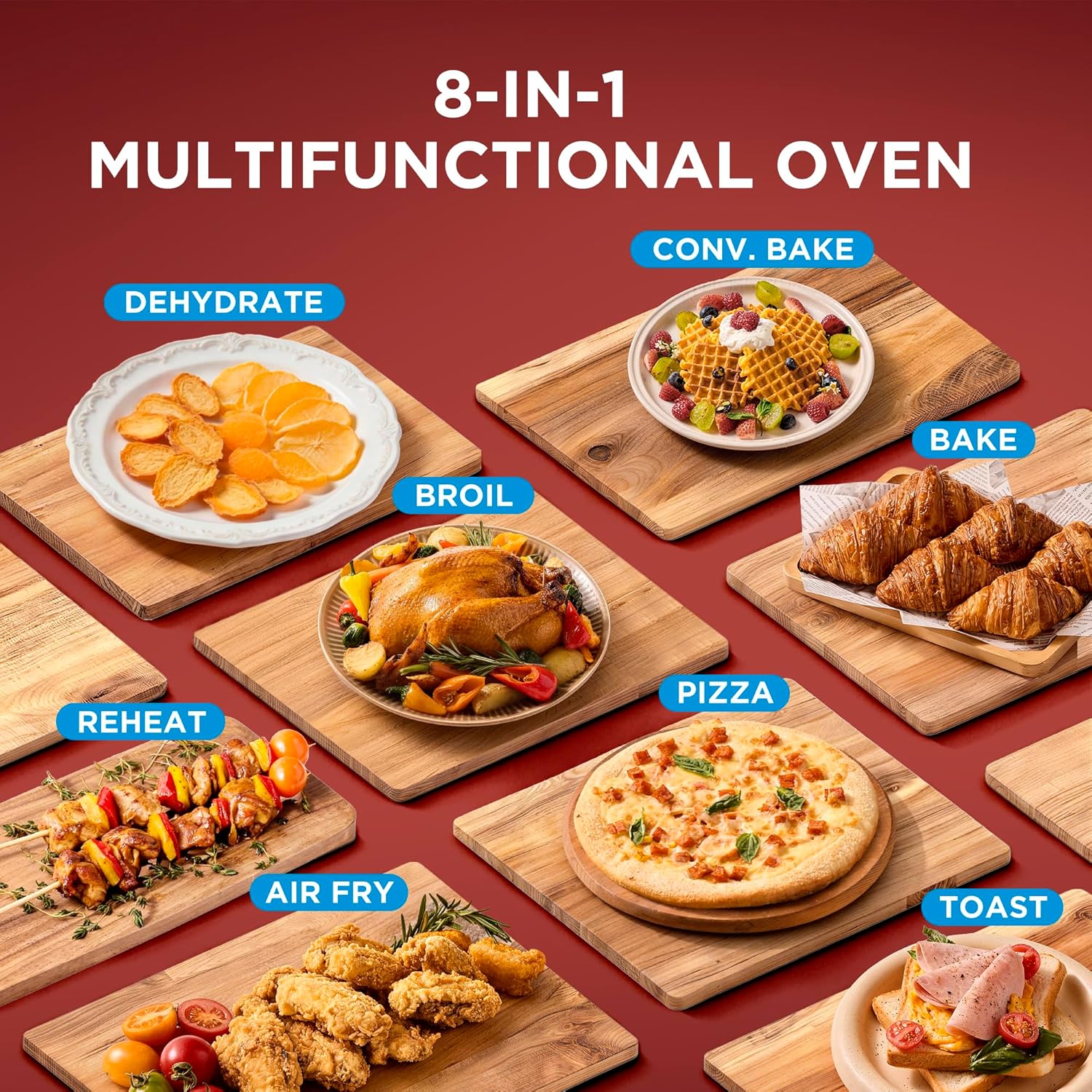8-in-1 Cooking Versatility: Switch effortlessly between Air Fry, Pizza, Broil, Toast, Bake, Convection Bake, Reheat, and Dehydrate functions. From quick snacks to full-course meals, enjoy flexible cooking in one compact appliance.