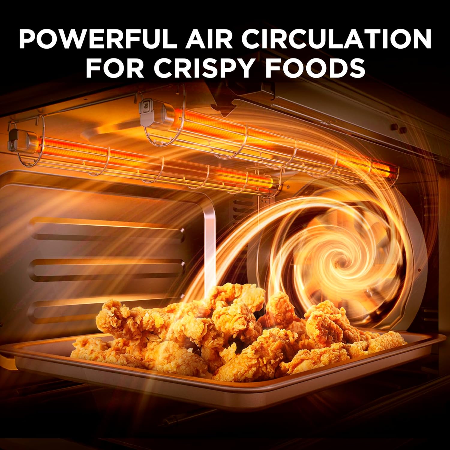 Infrared Even Heat & Crispy Air Fry: Infrared heating delivers fast, even heat with 5-degree precision for consistent results every time. The enhanced Air Fry mode circulates intense airflow to surround food for an all-around crispiness using up to 90% less oil compared to deep frying.