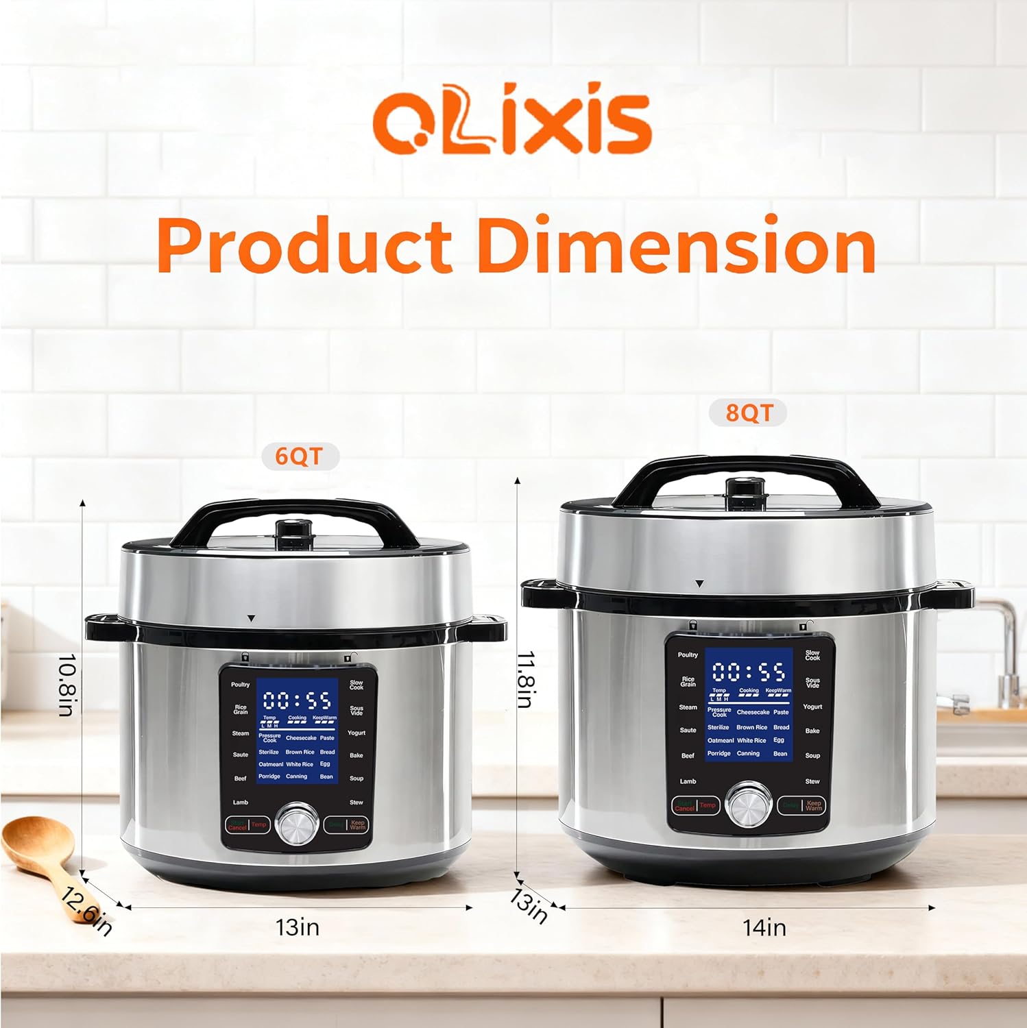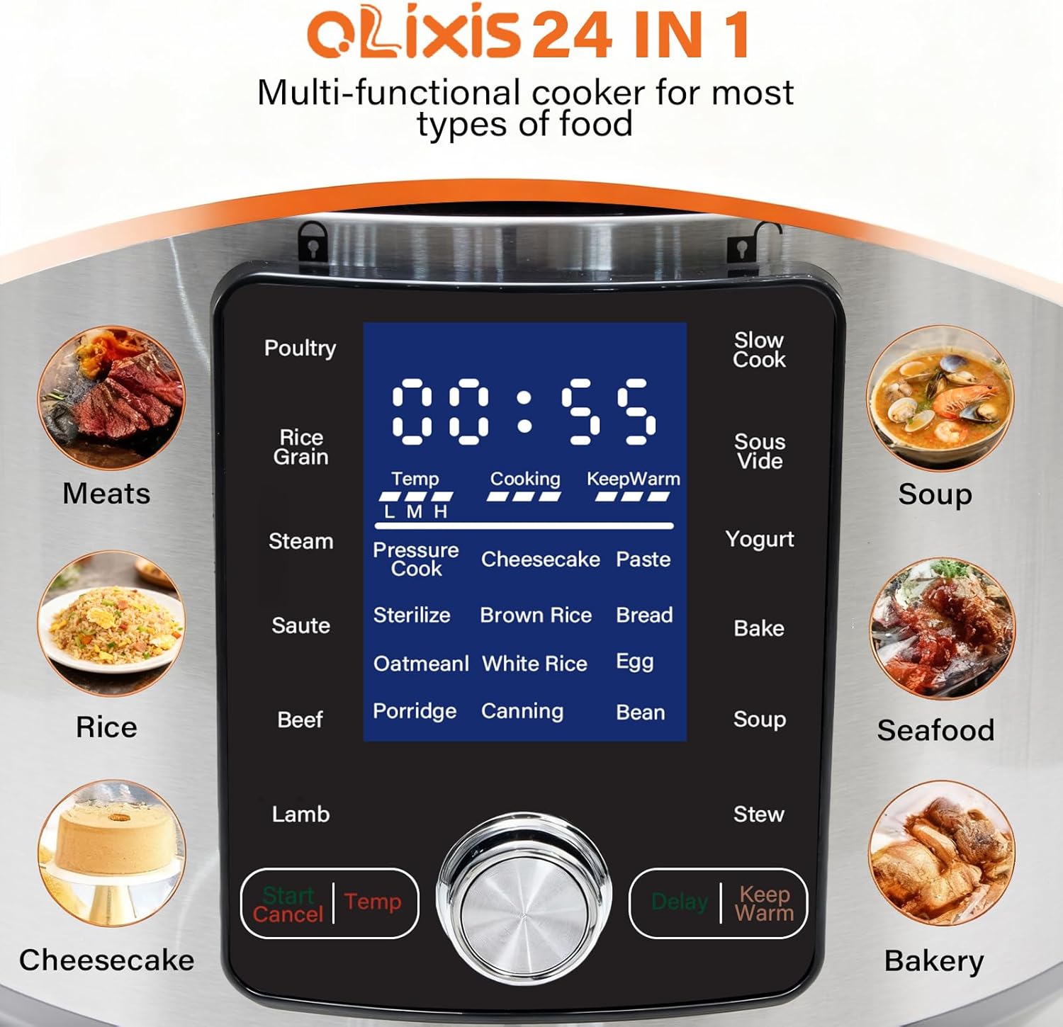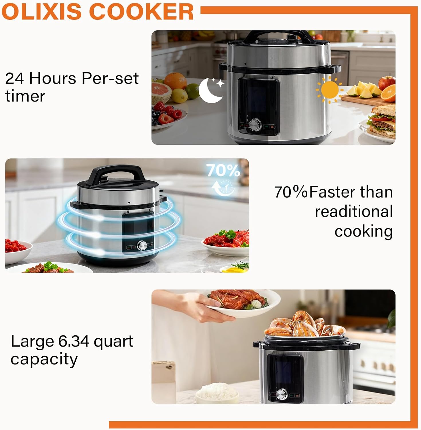OLIXIS Electric Pressure Cooker 6.34Quart, 24 Functions in 1, Stainless Steel Pressure Cooker for Canning, Slowcook, Yogurt, Steam, Rice Grain, Soup, Bean, Poultry, Beef, Bake, Stew, Porridge