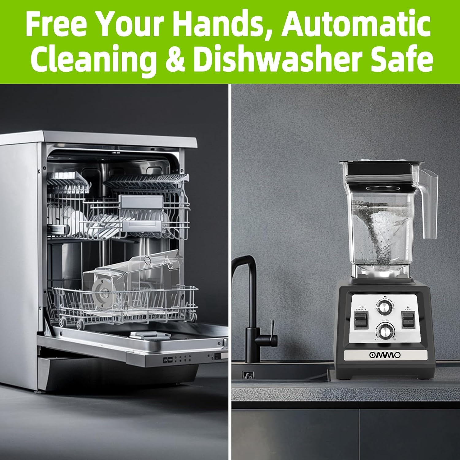 💧💧【Easy to Clean – Dishwasher Safe, Self-Cleaning & Hand Washable】OMMO high speed blender offers three easy cleaning options: ❶ The BPA-free 68oz pitcher is top-rack dishwasher safe; ❷ Support self-cleaning with warm water and soap in just 30–60 seconds; ❸ Or can be quickly hand-washed for added convenience—ideal for busy kitchens.
